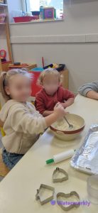 Les élèves de PS/ MS ont réalisé des décorations de Noël avec la micro crèche Bidibulle.