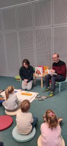 La classe de PS/MS a écouté un raconte tapis et plusieurs histoires proposés par Tiphaine et Cédric.